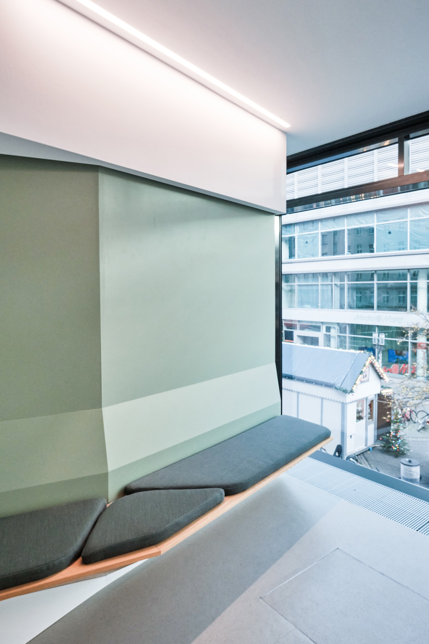 Für den Entwurf der radiologischen Praxis von Conrradia - Med 360 in West-Berlin entwickelten wir ein räumliches Konzept, das Magneten als Bezugspunkte versteht und so die bedeutendsten Bereiche hervorhebt. Aus dem homogenen Bewegungsfluss von Eisenfeilspänen im Zusammenspiel mit Magnetfeldern entstanden Muster, die die Bewegung des Raumes prägten. Aus diesem experimentellen Prozess wurden Formen abgeleitet, die unterschiedliche architektonische Elemente wie den Empfangstresen in seiner Form bestimmten. Die Material- und Farbpalette balanciert die kühlen Schwarz-Weiß-Töne des Magnetismus mit warmen Akzenten in Grün und Holz und schafft so ein harmonisches Zusammenspiel von Kontrast und Geborgenheit.